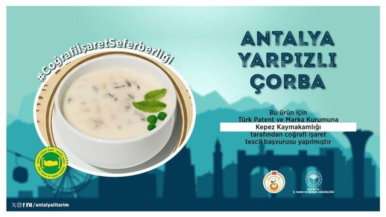 Antalya İl Tarım ve Orman Müdürlüğü tarafından yapılan açıklamada, kentin yerel mutfak kültürünü yansıtan “Antalya Yarpızlı Çorba” için coğrafi işaret tescil başvurusu yapıldığı duyuruldu. Başvuru, Kepez Kaymakamlığı aracılığıyla Türk Patent ve Marka Kurumu’na iletildi.