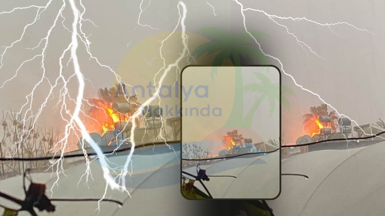Antalya’da akşam saatlerinde etkili olan sağanak yağışı yoğun yıldırım ve şimşekler takip etti. Kepez ilçesinde Altınova olarak bilinen Sinan Mahallesi’nde düşen yıldırım, bir palmiye ağacının tutuşmasına neden oldu. Yağmura rağmen alevlerin giderek büyüdüğü görüldü.