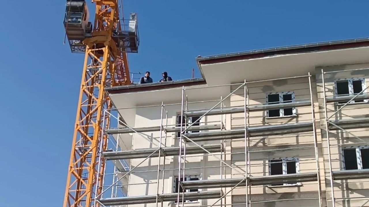 Edinilen bilgiye göre ilginç olay, Adıyaman Cumhuriyet Mahallesi’ndeki bir inşaatta yaşandı. İddiaya göre, 5 gün önce işi bırakan 2 işçi, müteahhitten paralarını alamadıkları gerekçesiyle inşaatın tepesine çıkarak aşağı atlama tehdidinde bulundu. Yaşanan olay nedeniyle bölgeye polis, itfaiye, UMKE ve ambulanslar sevk edildi. Şahıslar aşağı inmemekte ısrar edince devreye polisler girdi. Şahıslarla uzun süre konuşan polisler ikna ederek aşağı indirdi.