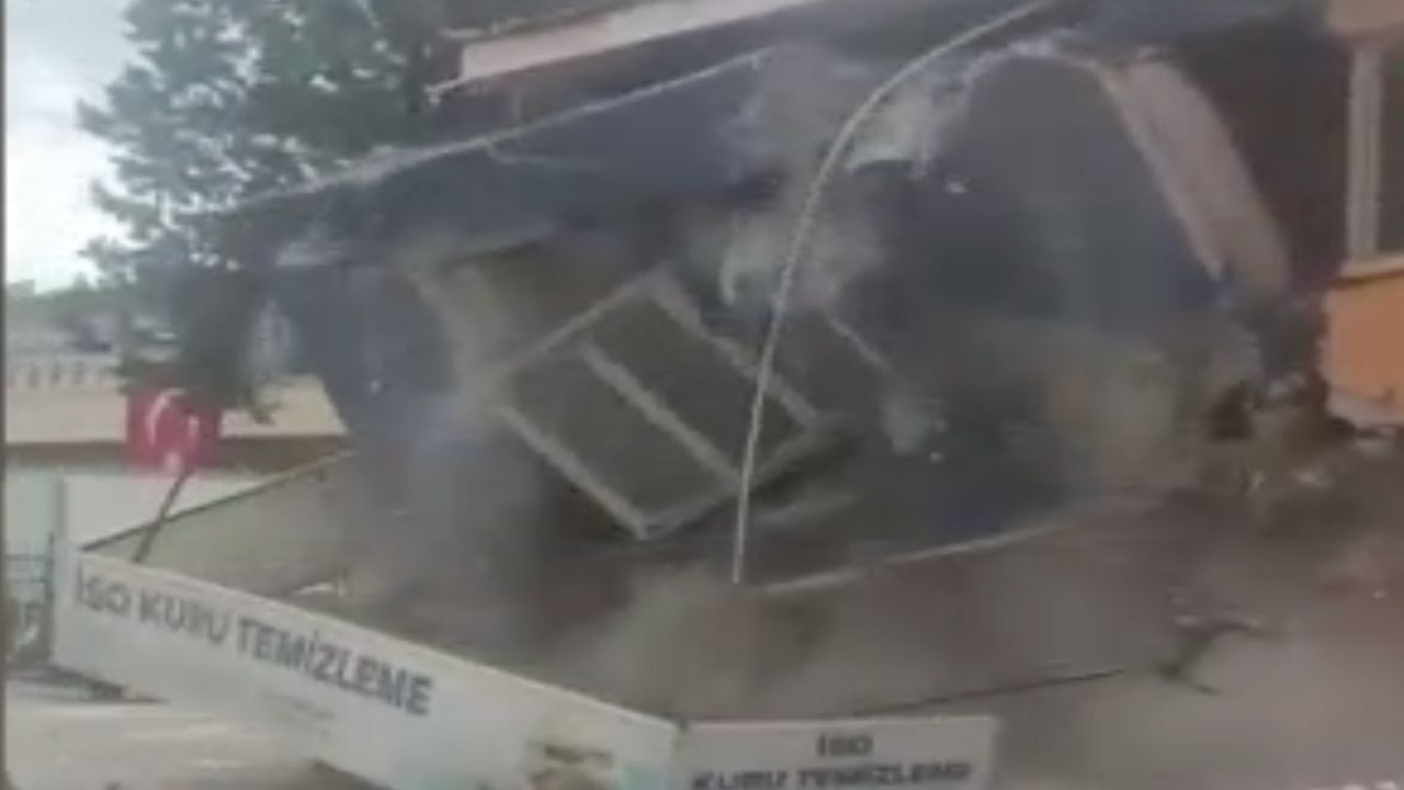 Balıkesir'de dün 6.1 büyüklüğünde gerçekleşen depremin ardından bugün çok sayıda artçı deprem meydana geldi. Depremlerin ardından dayanamayan ağır hasarlı bir bina çöktü.