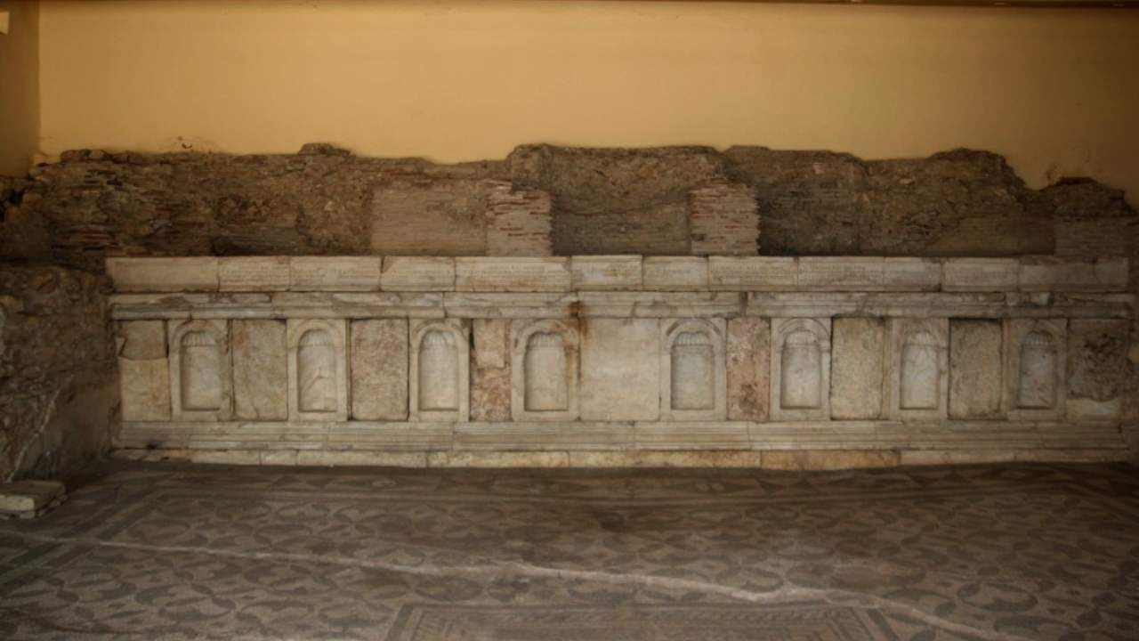 “Kütüphane bir defa yangına uğramış. Bu yangına uğramasının temel sebebi de Roma dönemin içerisinde imparatorlar değişince yeni gelecek olan imparator eski imparatorun düşüncesini almasın, onun fikirlerini almasın niyetiyle kütüphaneler yanıyormuş. Mimari özelliği neticesiyle Efes'teki kütüphaneye benzerlik gösteriyor ama dediğim gibi tamamen orijinal, herhangi bir ekleme ve restorasyon çalışması yapılmadan gösterilen eserimizdir. Kilitli bir şekilde rehber eşliğinde açılıp zarar verilmeden tekrardan çıkılıyor”