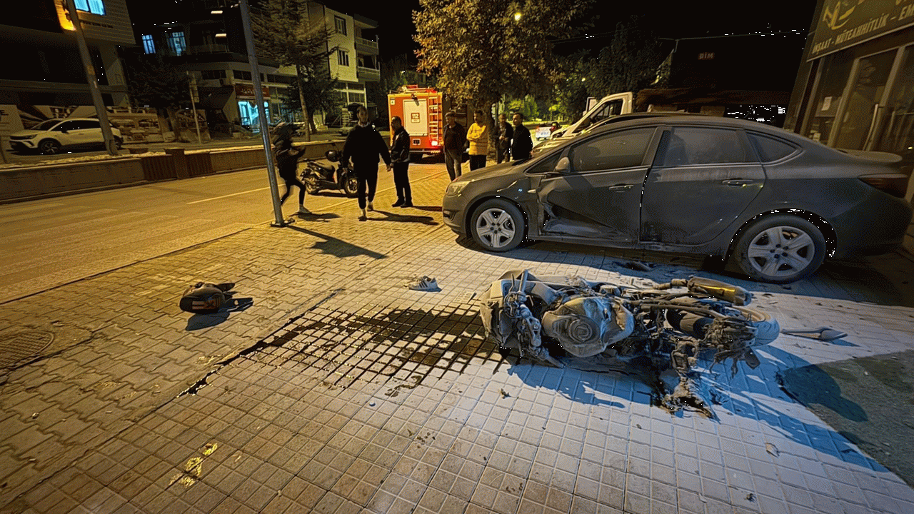 Kaza, Salı günü gece saatlerinde Kahveler mevkiinde meydana geldi. Edinilen bilgiye göre, Burak Pekşen idaresindeki 07 BRK 015 plakalı otomobille aynı yönde ilerleyen ve M.A.T. idaresindeki 07 CDG 180 plakalı motosiklet çarpıştı. Kazada savrulan motosiklet, park halindeki araçlara çarparak alev aldı. Motosikletin yanında bulunan sürücü ise yanmaktan son anda otomobil sürücüsü Pekşen sayesinde kurtarıldı. İhbar üzerine adrese itfaiye, sağlık ve polis ekipleri sevk edildi. Adrese gelen itfaiye ekipleri tarafından yangın söndürülürken motosiklet sürücüsü sağlık ekipleri tarafından yapılan ilk müdahalenin ardından ambulansla Bucak Devlet Hastanesi’ne kaldırıldı. Yaralının hayati tehlikesinin bulunmadığı, durumunun iyi olduğu öğrenildi.
