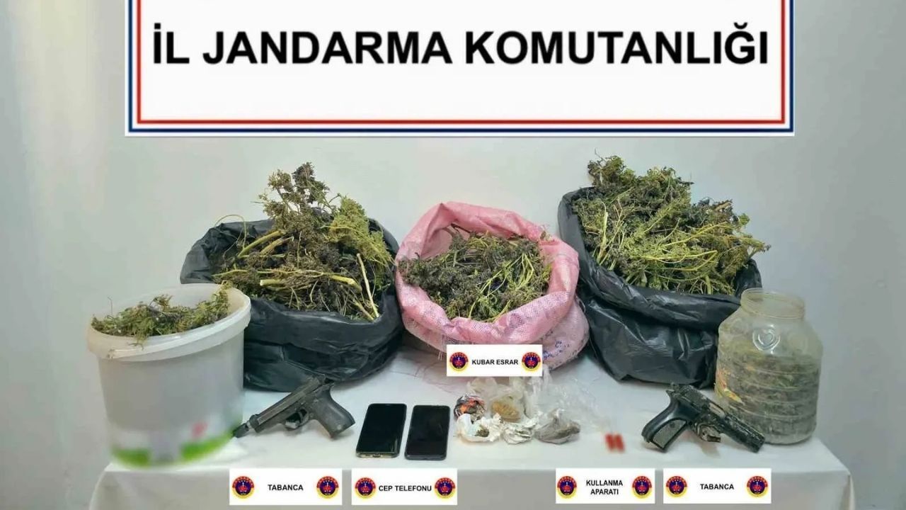Çalışmalar kapsamında gözaltına alınan İ.K. ve Ö.K. isimli iki şüpheli, jandarmadaki işlemlerinin tamamlanmasının ardından çıkarıldıkları adli makamlarca tutuklandı. Şüphelilerin üzerlerinde ve ikametlerinde yapılan adli aramalarda ise 2 kilo 824 gram kubar esrarın yanı sıra 2 ruhsatsız tabanca, 10 gram kenevir tohumu, 3 uyuşturucu kullanma aparatı, 2 şarjör ve 2 cep telefonu ele geçirildi.