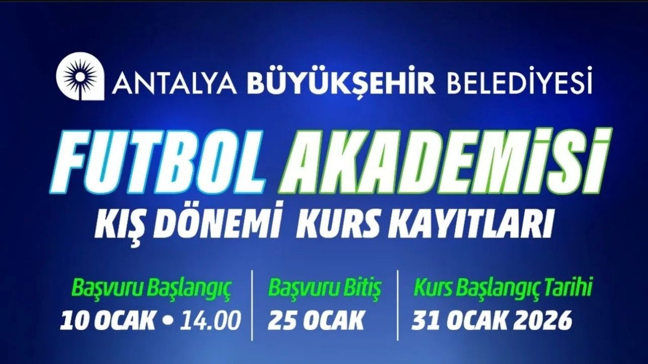 Antalya Büyükşehir Belediyesi Gençlik ve Spor Hizmetleri Daire Başkanlığı çatısı altında yürütülen akademiye 2014–2019 doğumlu (7-12) kız ve erkek çocukları kabul edilecek. Başvurular genclikspor.antalya.bel.tr adresinden çevrim içi alınacak. Dersler Muratpaşa ilçesi Deniz Mahallesi’nde bulunan Atatürk Parkı içerisindeki Antalya Büyükşehir Belediyesi halı sahalarında uzman antrenör ve eğitimciler eşliğinde gerçekleştirilecek. Program, temel futbol becerilerini geliştirmeyi, takım ruhu ve spor kültürünü erken yaşta kazandırmayı hedefliyor. Bilgi ve kayıt için 0 242 248 53 95 numaralı hat üzerinden bilgi alınabilecek.