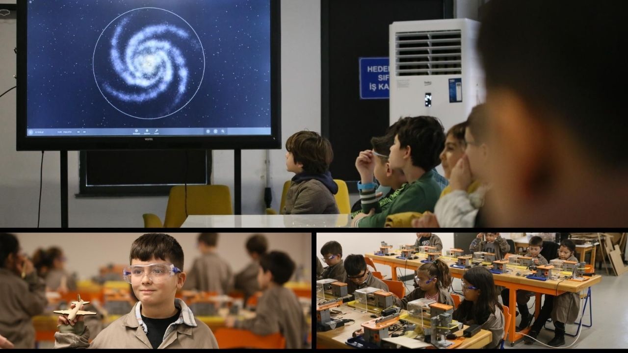 Fen Bilimleri Atölyesi, öğrencilerin bilimsel düşünce becerilerini geliştirmelerine olanak tanıyan yaratıcı ve keyifli bir öğrenme ortamı sağlıyor. Fizik, kimya ve biyoloji gibi temel bilim dallarını kapsayan bu atölyede, genellikle günlük hayatla ilişkilendirilen yenilikçi ve eğlenceli deneyler gerçekleştiriliyor. Matematik atölyesi, öğrencilere sadece teorik bilgi değil, aynı zamanda yaratıcı düşünme fırsatı sunarak matematiksel kavramları oyunlar, deneyler ve yaratıcı aktivitelerle öğrenme şansı sunuyor. Ahşap Tasarım Atölyesi, öğrencilerin matematik, geometri, fizik, planlama gibi becerilerden faydalanması ve bunları hayal gücüyle birleştirip özgün tasarımlar ortaya koymaları sağlanıyor. Robotik ve kodlama atölyesi, Mekanik, Elektronik ve Yazılım alanlarındaki doğru bilgi aktarımları ile ileride mühendislik alanında ilerlemek isteyen öğrenciler için temel oluşturuluyor. Aynı zamanda gündelik yaşamlarında analitik düşünme becerisini, problem çözme becerisini, zihinsel çözümleme becerisini geliştirerek daha hızlı daha aktif düşünmeleri sağlanıyor. Astronomi Atölyesi, bu atölyede bulunan ekipmanlar ile öğrencilerin meraklarını giderebilmek için gözlem olanağı sağlanıyor.