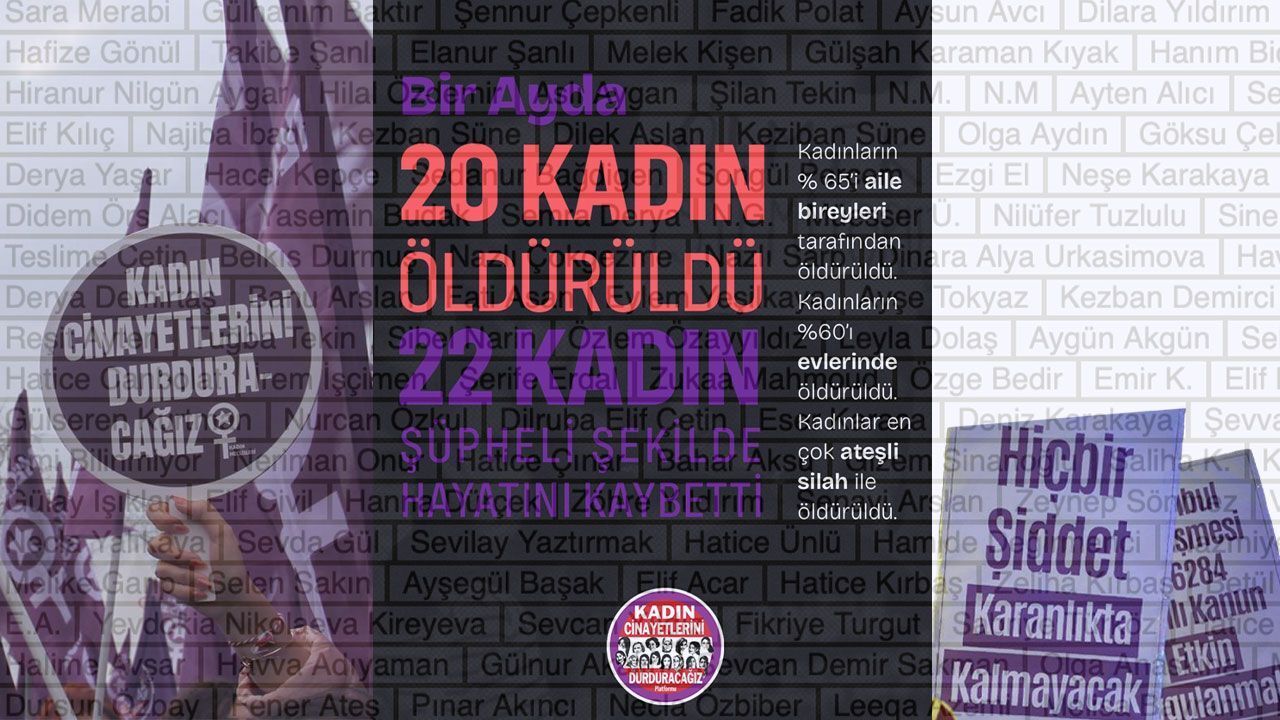 Kadınların 12’si evinde, 5’i sokakta, 2’si işyerinde, 1’i arabada öldürülürken, bu ay öldürülen kadınların yüzde 60’ının evinde öldürüldüğü belirtildi.