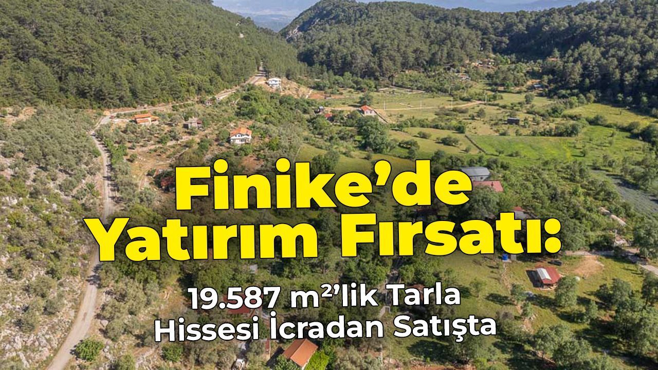 Antalya’nın Finike ilçesinde yer alan ve toplam 19.587,93 m² yüzölçümüne sahip tarlanın 1/3 hissesi, icra kapsamında satışa çıkarıldı.