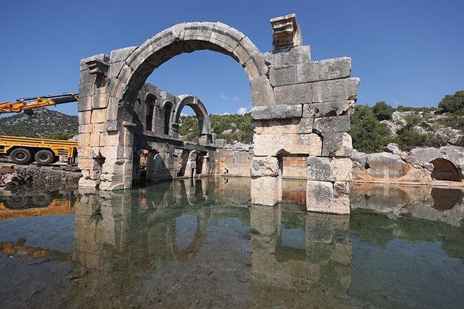 Antalya’nın Demre ilçesinde bulunan Myra Antik Kenti, 1850 yıllık nymphaion yapısıyla tarihe ışık tutmaya hazırlanıyor. Roma döneminde, şifalı su kaynağı üzerine inşa edilen bu nadir yapı, yürütülen restorasyon çalışmalarıyla 2026 yılı sonunda ziyaretçilere açılacak.