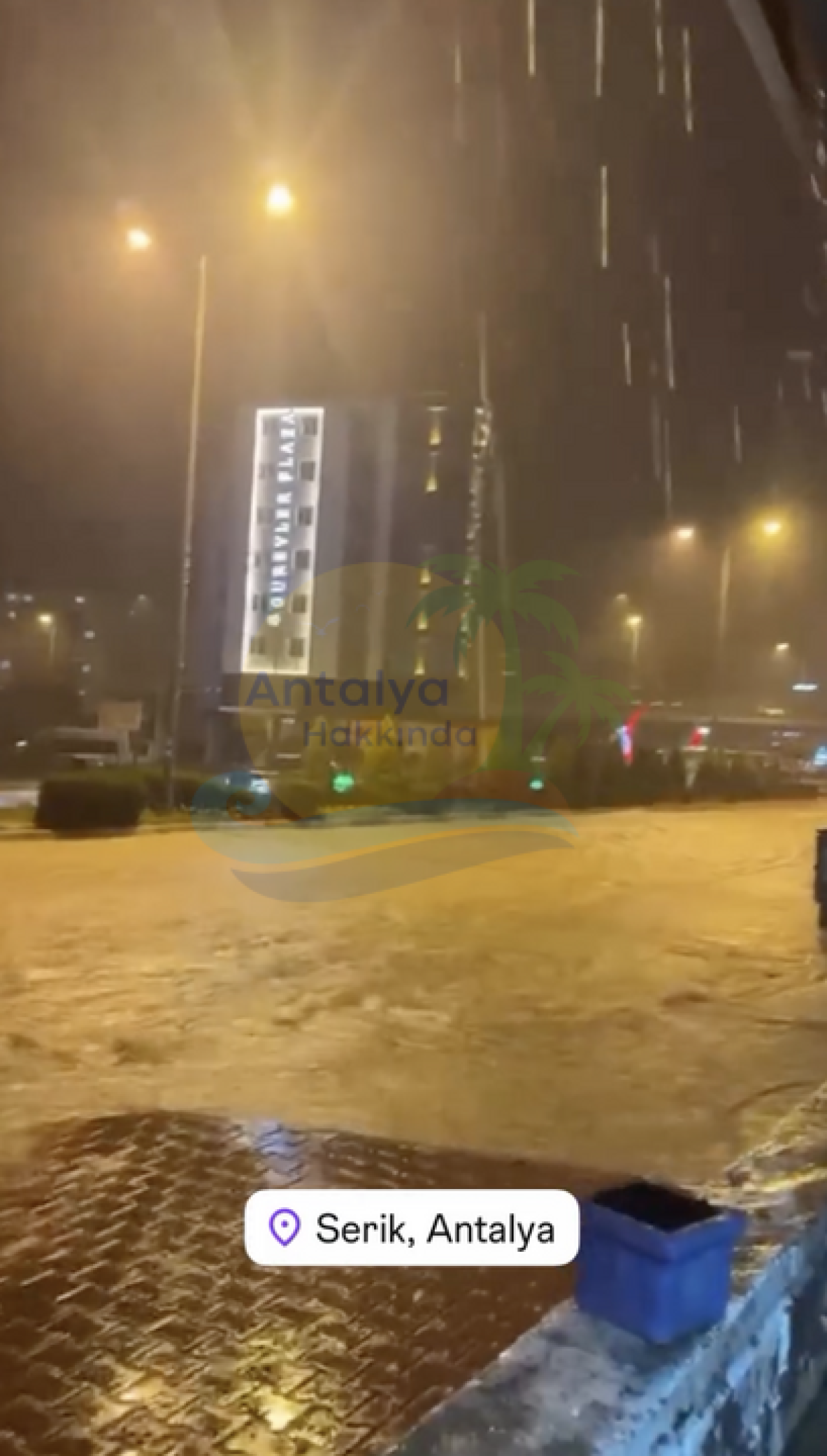 Antalya genelinde yapılan sarı kodlu uyarının ardından Serik ilçesinde yağış etkisini kısa sürede artırdı. Şiddetli sağanak, ilçe genelinde sel oluşmasına neden oldu.