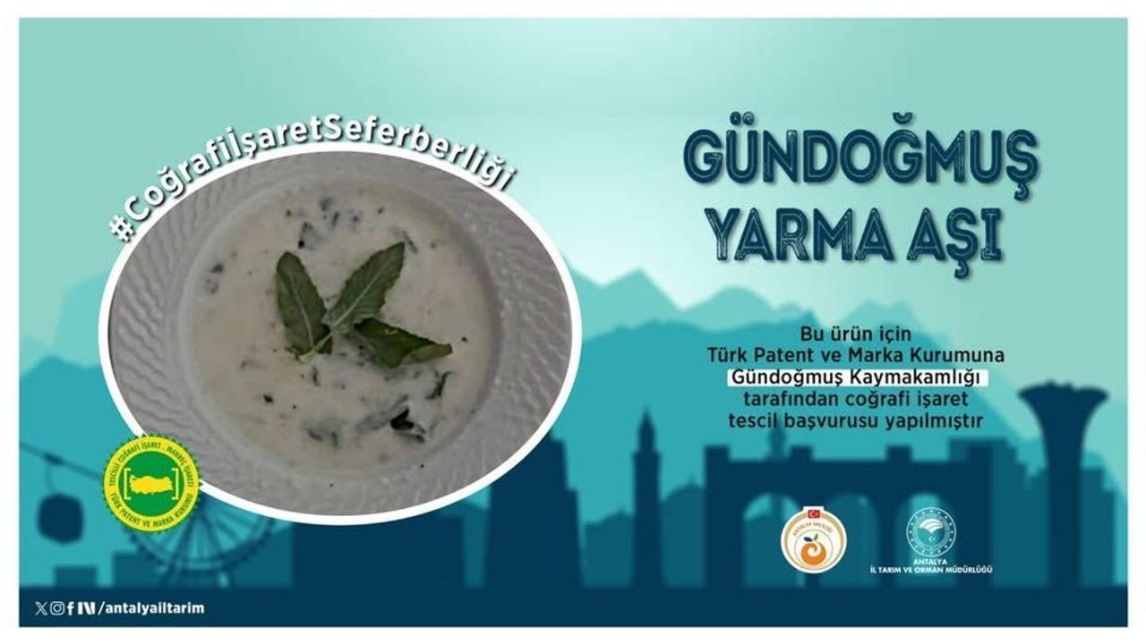 Bu kapsamda Gündoğmuş Kaymakamlığı tarafından, ilçenin özgün lezzetlerinden biri olan Gündoğmuş Yarma Aşı için Türk Patent ve Marka Kurumu’na coğrafi işaret tescil başvurusu yapıldı. Antalya İl Tarım ve Orman Müdürlüğü tarafından paylaşılan bilgiye göre, tescil çalışmaları tamamlandığında bu yöresel yemek, hem kentin kültürel mirasını koruyacak hem de ekonomik açıdan önemli bir değer haline gelecek.