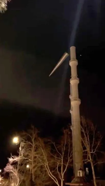 Edinilen bilgilere göre, Ayazmana Halıkent Mahallesi’nde bulunan bir caminin minaresinin külah kısmı, kuvvetli rüzgârın etkisiyle büyük bir gürültüyle yerinden koparak çevreye savruldu. Çevrede bulunan vatandaşların ihbarı üzerine bölgeye itfaiye ve emniyet ekipleri sevk edildi. Ekipler, olayın ardından çevrede geniş güvenlik önlemi alarak yolu araç ve yaya trafiğine kapattı. Olası risklere karşı cami ve çevresinde güvenlik çemberi oluşturulurken, hasar tespit çalışmalarına başlandı.