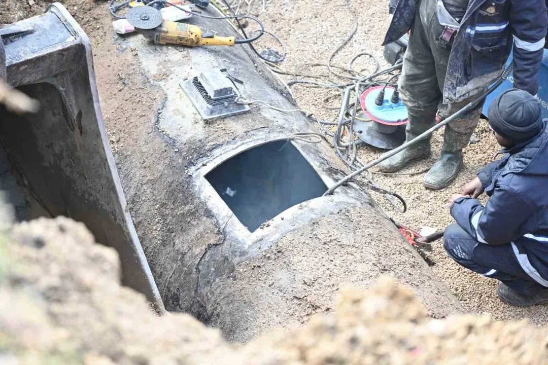 Patlağın bulunduğu noktada zaman kaybetmeden çalışma başlatan ekipler, kepçe yardımıyla kazı yaparak boruya ulaştı. Yapılan incelemelerde borunun belirli bir bölümünde hasar oluştuğu belirlenirken, patlayan kısım onarılarak kaynak işlemi gerçekleştirildi. Kaynak ve güçlendirme çalışmalarının tamamlanmasının ardından hatta kontrollü şekilde yeniden su verildi.