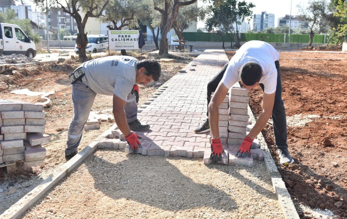 Antalya'da Kepez Park ve Bahçeler Müdürlüğü ekipleri, mevcut parklarda bakım ve yenileme çalışmalarını sürdürürken, diğer yandan da yeni park projeleriyle ilçedeki yeşil alan miktarını artırıyor. Bu kapsamda Göçerler Mahallesi’nin 5351 ve 5347 sokaklarının kesiştiği noktada 1.930 metrekarelik yeni park alanında çevre düzenleme çalışmaları devam ediyor. Çimlendirme işlemleriyle alanın daha yeşil bir görünüme kavuşması hedeflenirken, mevcut ağaçlar koruma altına alındı. Parke taşı döşeme çalışmalarının ardından çocuk oyun grupları, spor aletleri, oturma alanları, banklar ve kamelyalar da yerleştirilerek park vatandaşların kullanımına açılacak.