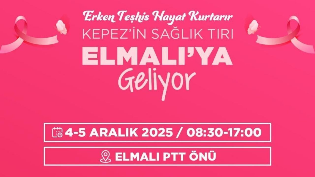 Kepez Belediyesi’nin Mobil Sağlık Merkezi, sosyal belediyecilik hizmetleri kapsamında Elmalı ilçesine gidiyor. 4-5 Aralık tarihlerinde Elmalı PTT önünde hizmet verecek sağlık tırı, vatandaşlara hastane konforunda ücretsiz kanser tarama fırsatı sunacak.