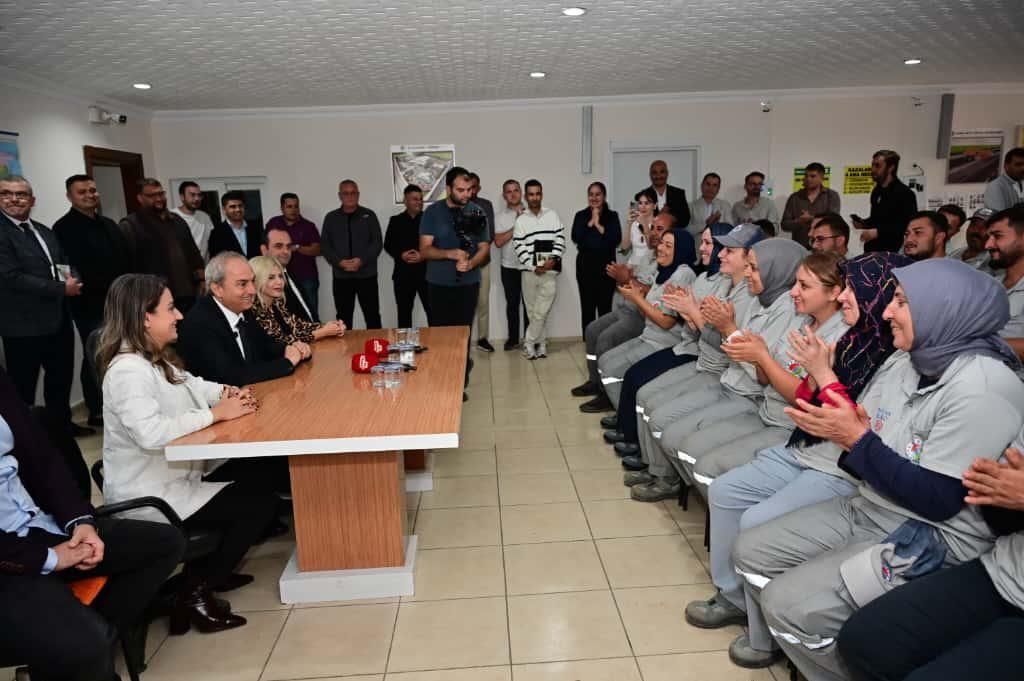 Başkan Kocagöz’ün müjdesi, işçiler tarafından büyük bir sevinç ve alkışlarla karşılık buldu.