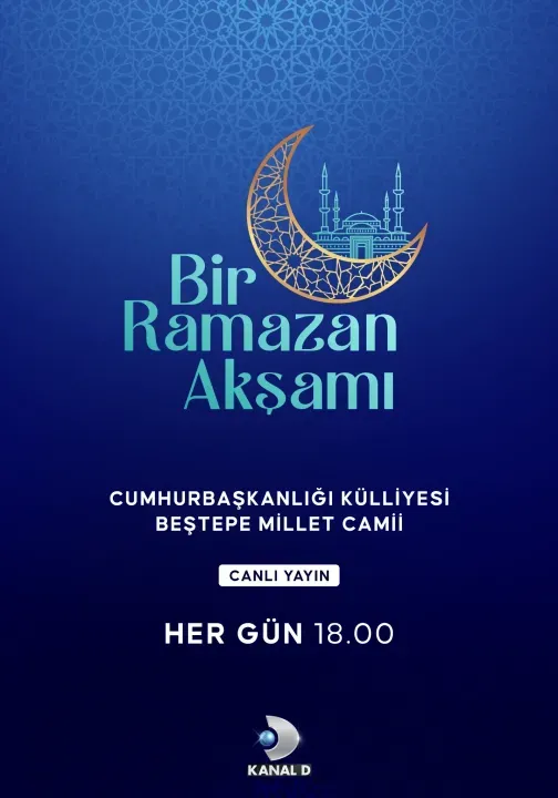 İslam âleminin hasretle beklediği On Bir Ayın Sultanı Ramazan-ı Şerif’in manevi atmosferi, “Bir Ramazan Akşamı” ile Kanal D ekranlarında yaşanacak. Ramazan boyunca her gün iftar saatinde izleyicilerin evlerine konuk olacak program, Cumhurbaşkanlığı Külliyesi Beştepe Millet Camii avlusundan canlı yayınlanacak.