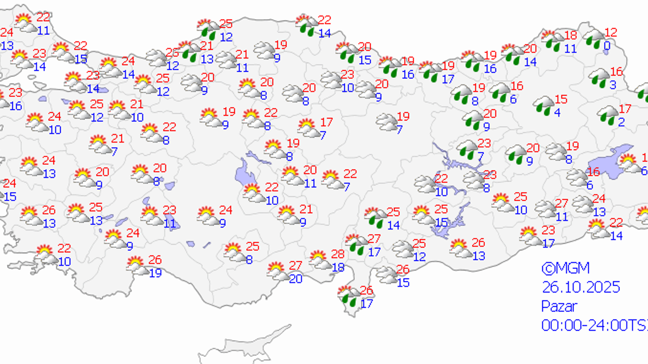 Bugün (25 Ekim 2025 Cumartesi) itibarıyla yağışların; Marmara'nın doğusu, Batı Karadeniz hattı ile Samsun çevrelerinde yerel olarak kuvvetli olması bekleniyor.