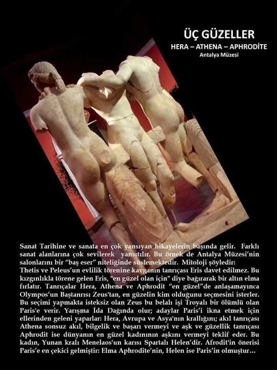 Üç Güzeller Hera, Athena ve Aphrodite heykel grubu, Antik Yunan mitolojisinin en dikkat çekici hikâyelerinden birini temsil ediyor. Sanat tarihinde “en güzelin seçilmesi” efsanesiyle tanınan bu eser, tanrıçalar arasındaki rekabeti ve insanlık tarihine yön veren bir hikâyeyi simgeliyor.