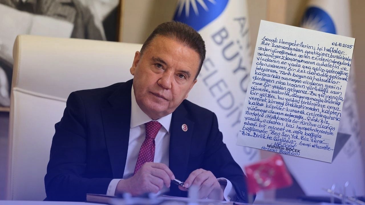 Antalya Cumhuriyet Başsavcılığı'nın 'rüşvet' soruşturması kapsamında 5 Temmuz günü gözaltına alındıktan sonra tutuklanan ve geçici olarak Büyükşehir Belediye Başkanlığı görevinden uzaklaştırılan Muhittin Böcek, sosyal medya hesabı üzerinden birliktelik mesajı verdi.