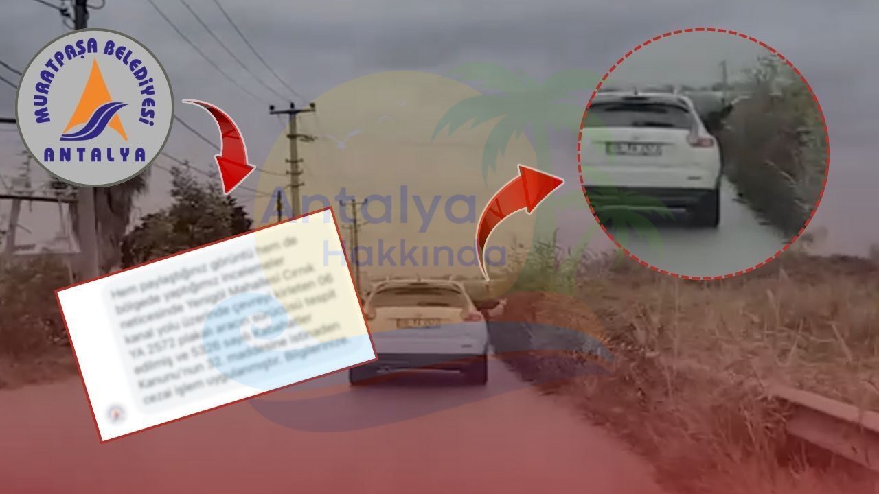 Muratpaşa Belediyesi haber de yer alan cep telefonu görüntülerinin ve Yenigöl Mahallesinde bulunan Cırnık kanal yolu bölgesinde yapmış olduğu incelemelerinin ardından 5326 sayılı Kabahatler Kanunu'nun 32. maddesine istinaden araç sahibine cezai işlem uyguladı.