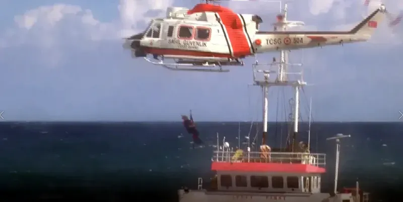 Nefes kesen kurtarma operasyonunda mürettabatın helikopterden karaya indirildiği anlar cep telefonuyla görüntülendi: