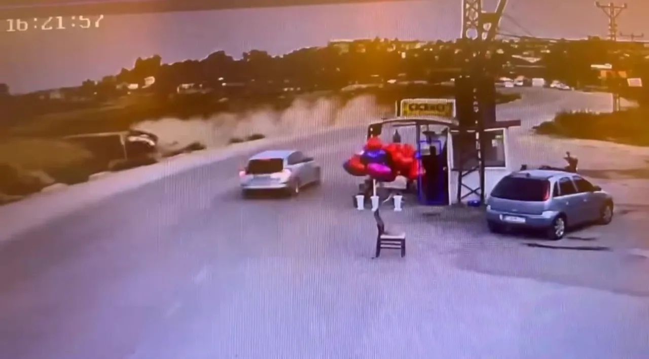 Bir iş yerinin güvenlik kamerasına yansıyan kazaya ilişkin soruşturma başlatıldı.