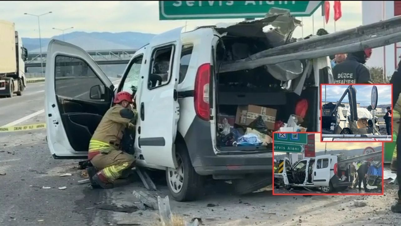 Kaza, sabah saatlerinde Anadolu Otoyolu'nun Düzce Üçköprü mevkisinde meydana geldi. Ankara istikametine giden Doğan Yüner yönetimindeki 34 GJA 956 plakalı hafif ticari araç kontrolden, çıkarak dinlenme tesisi yol ayrımındaki bariyere çarptı. Bariyer, hafif ticari aracın ön kısmından girip, arkasından çıktı. İhbar üzerine bölgeye otoyol jandarması, itfaiye ve sağlık ekipleri sevk edildi.