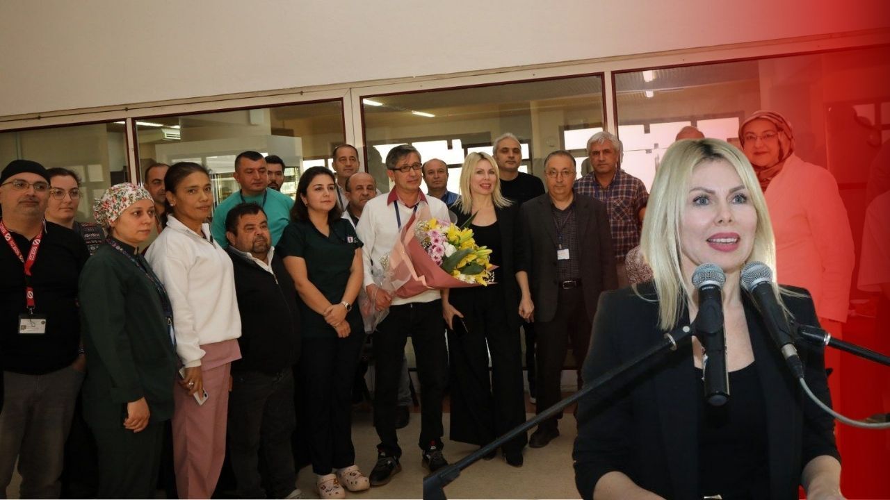 Rektör Özkan günün anısına hastane çalışanı Cafer Taşkın’a çiçek takdim etti. Etkinlik fotoğraf çekiminin ardından son buldu.