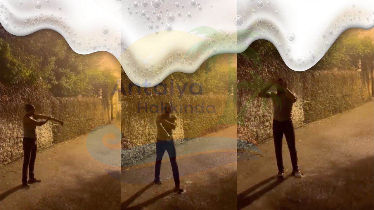 Antalya’da etkili olan sağanak yağış, kentte ilginç anlara sahne oldu. Bir vatandaş, yağmuru fırsat bilerek sokakta duş aldı.
