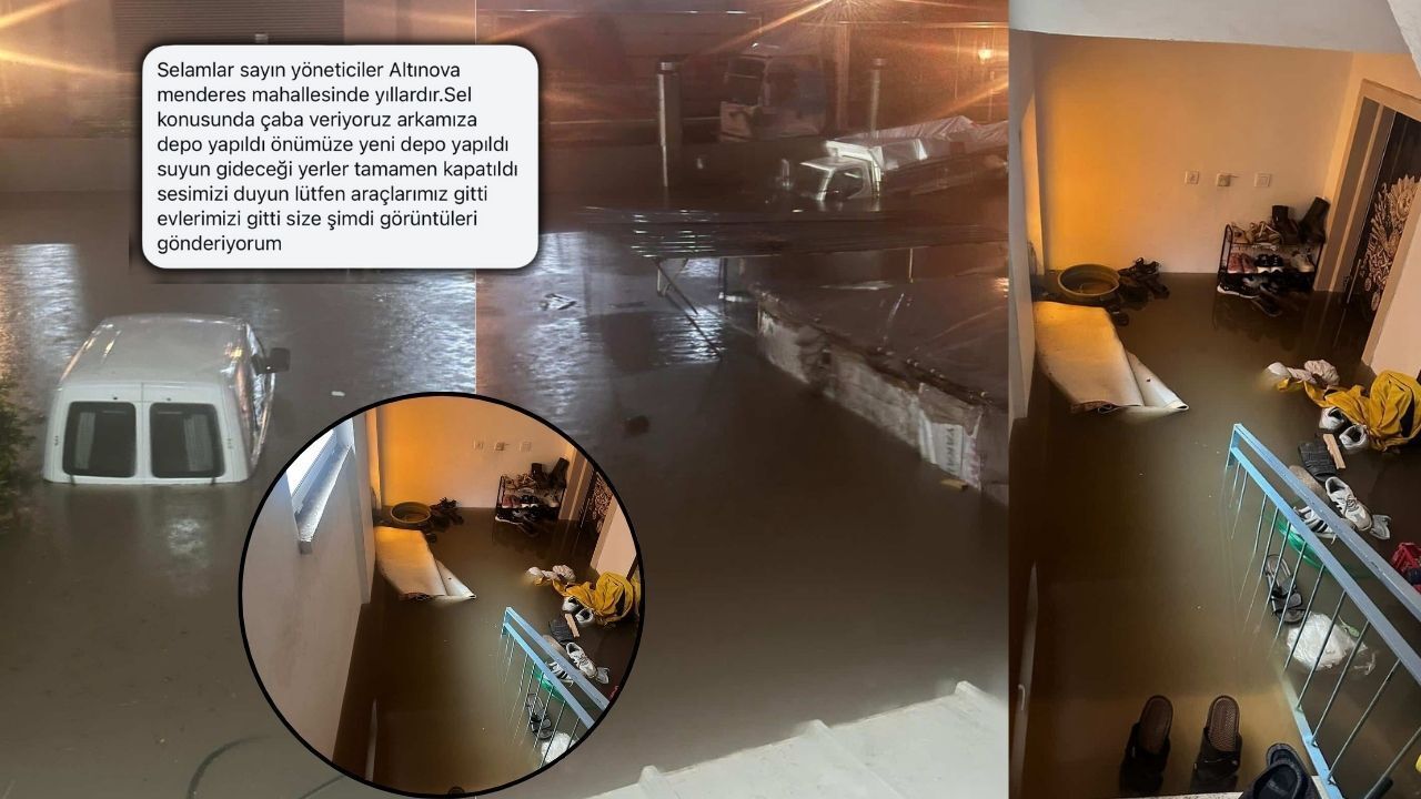 “Altınova Menderes Mahallesi’nde yıllardır sel konusunda çaba veriyoruz. Arkamıza depo yapıldı, önümüze yeni depo yapıldı. Suyun gideceği yerler tamamen kapatıldı. Sesimizi duyun lütfen. Araçlarımız gitti, evlerimiz gitti.”