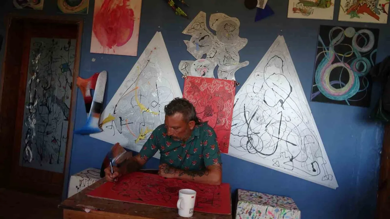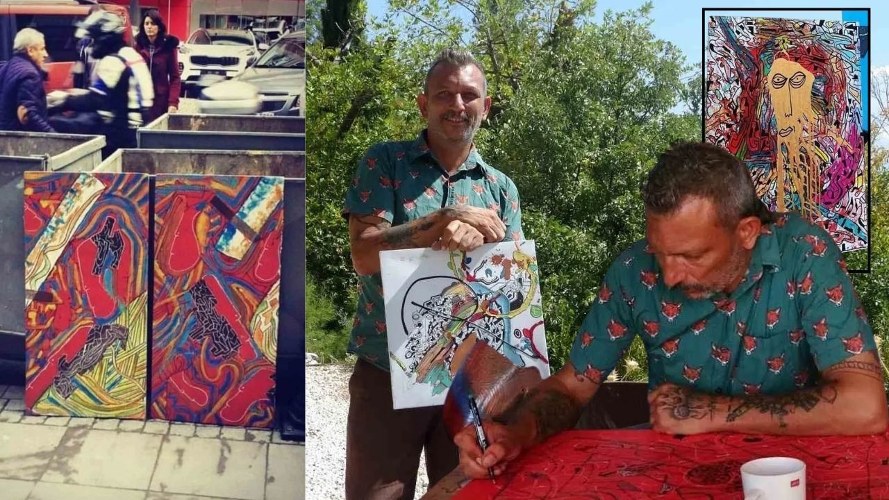 Antalya'nın Kaş ilçesinde yaşayan ressam Efe Işıldaksoy (50), 11 yıldır yaptığı tablolarını çöpe atıyor. Bugüne kadar dünyanın farklı ülkelerinde 2 bin 175 resmini çöp kutularının kenarına bırakan Işıldaksoy, 2 bin 175’inci eserini Kaş Ortabağ’da haber çekimleri sırasında çöp bidonunun üzerine astı.