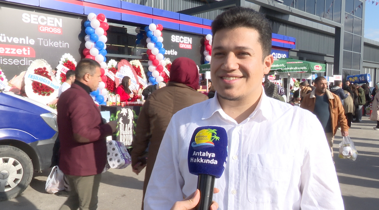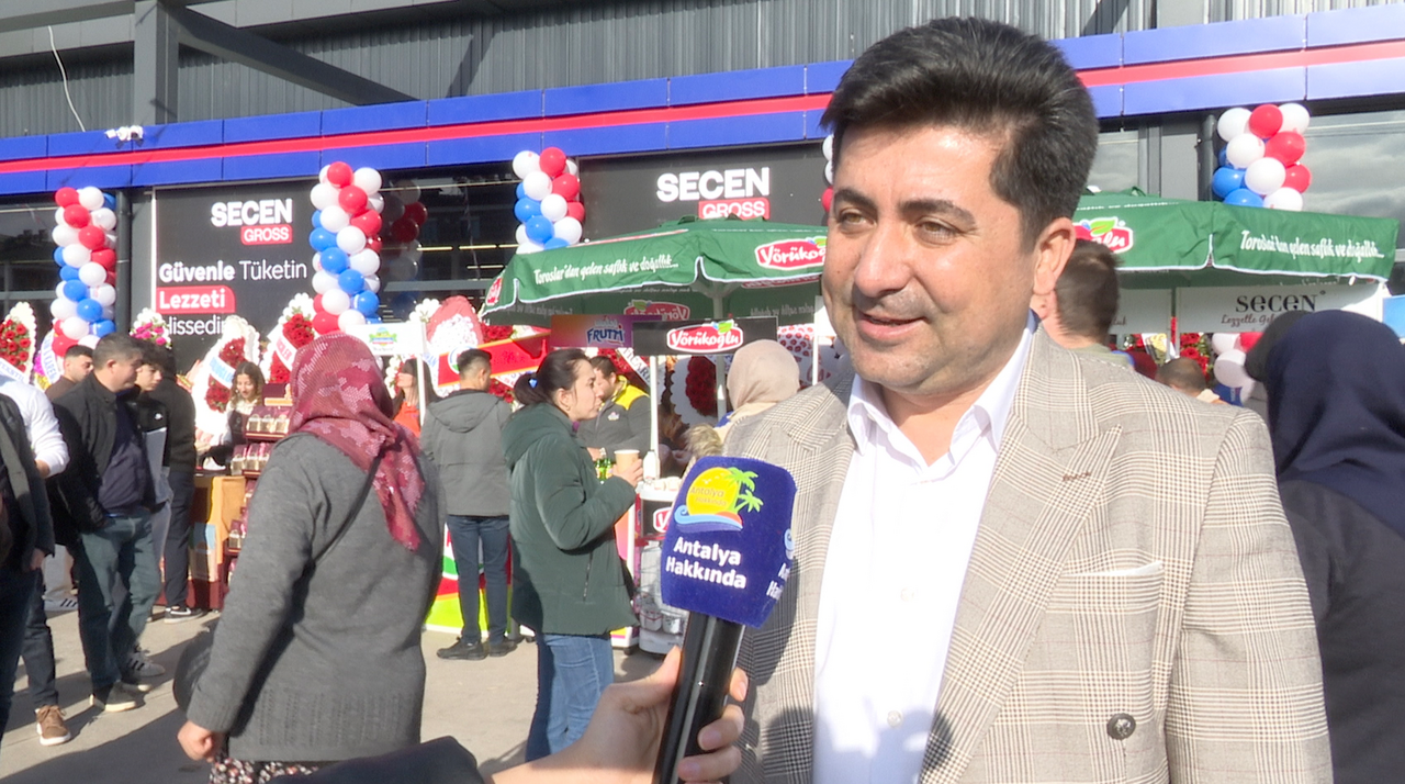 "Öncelikle hoş geldiniz. Secen Gross mağazamızın 5'inci şubesini açmanın haklı gururunu yaşıyoruz. 13.000 çeşit ürünümüzle, gıdadan temizliğe, kozmetikten pet shopa ve gıda dışındaki geniş ürün yelpazemizle hizmete açılmış bulunmaktayız. Tüm Kepez ve Antalya halkımıza hayırlı olsun. Burada 100'ü aşkın iş arkadaşımız istihdam ediliyor. Toplam Secen Gross'larımızda da 400'ü aşkın personelimiz var. Bu istihdamla beraber ekonominin bu denli sıkıntılı olduğu dönemlerde böyle yatırımları çok önemli görüyorum. İnşallah daim olur. Başka bir yerimiz yok. Hepimiz bu topraklara yatırım yapacağız. Ondan kaynaklı Rabbim hayırlı mübarek etsin. Bu mağazanın açılış sürecinde emeği olan tüm iş arkadaşlarıma, tüm personellerimize teşekkür ediyorum. Halkımızı da davet ediyoruz. Buyurun gelin sizler için çok özel indirimler hazırladık. Ve bu indirimler sadece bir hafta değil, bir ay boyunca devam edecek. İnşallah muvaffak oluruz"