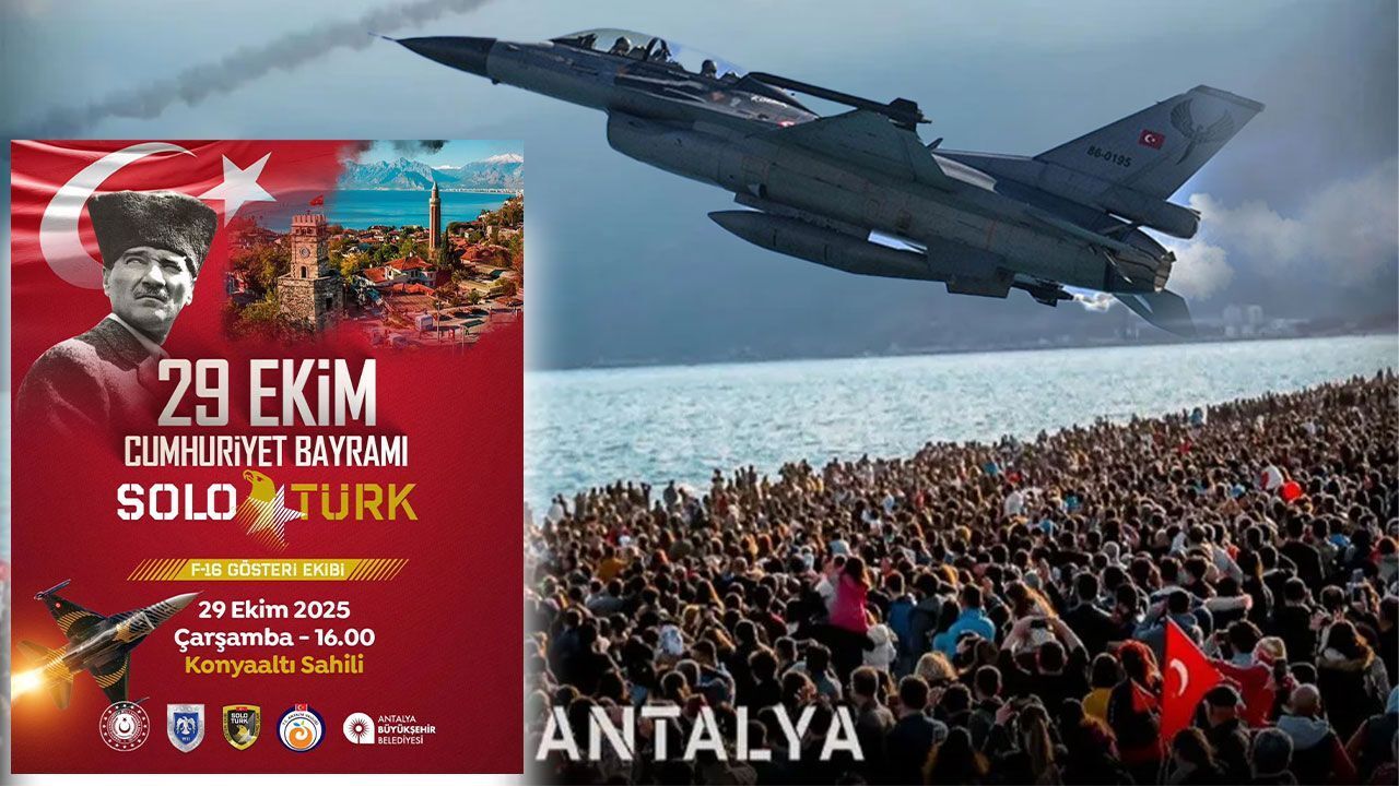 Cumhuriyetin 102’nci yıl dönümü dolayısıyla hazırlanan program kapsamında SOLOTÜRK, 29 Ekim Çarşamba günü saat 16.00’da Konyaaltı Sahili semalarında F-16 uçağıyla gösteri yapacak. Organizasyon, vatandaşlara görsel bir şölen sunmayı hedefliyor.