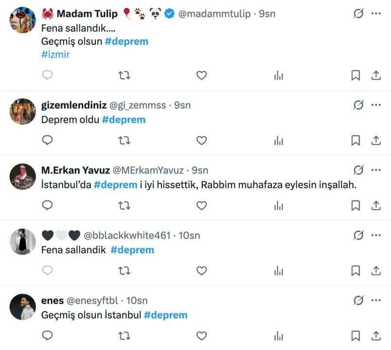 Vatandaşlar sosyal medyada birçok ilden depremi hissettiğini açıkladı.
