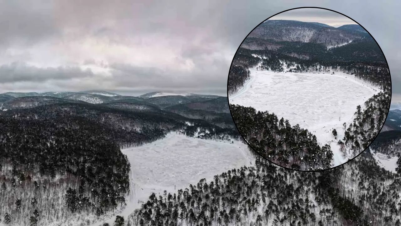Tokat’ın Reşadiye ilçesindeki Kurt Gölü, donan yüzeyi ve karlı manzarasıyla görsel şölen sundu. İlçeye bağlı Kızılcaören beldesi yakınlarında bulunan yaz aylarında mesire alanı olarak kullanılan Kurt Gölü, kışın ise farklı bir güzelliğe büründü. Soğuk hava nedeniyle buz tutan göl yüzeyi beyaz örtüyle kaplanırken, yeşil çam ormanlarıyla oluşturduğu manzara dron ile havadan görüntülendi. Doğayla iç içe görüntüler izleyenleri adeta mest etti.