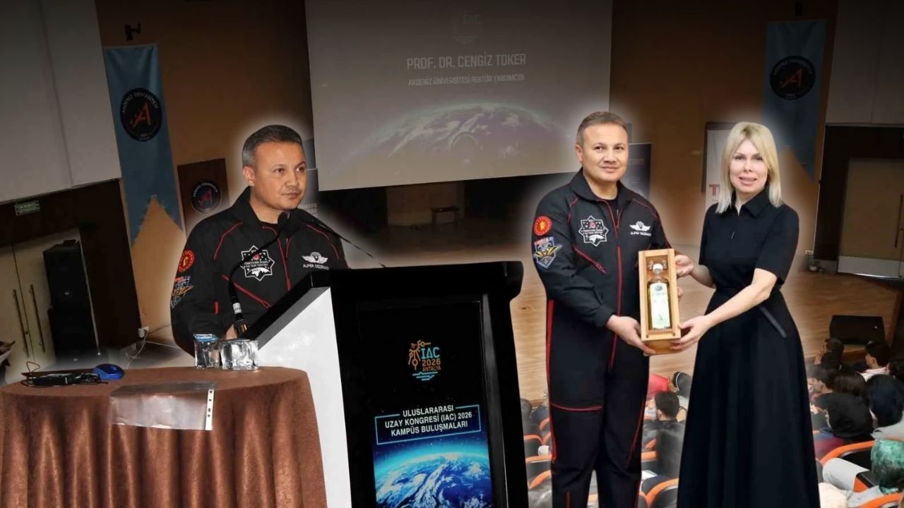 "Türkiye’nin insanlı ilk uzay misyonunu tamamlamamızdan bu yana geçen 24 aylık sürenin içerisinde Antalya’da bugün 239. şehir değişimi ile 601. programı yapıyoruz. Geçen yıl tesadüfen yine şubat ayının içerisinde, 25 Şubat’ta GÜNKAF kapsamında üniversitenizde bulundum. Bugün IAC 2026 Antalya’nın hazırlık sürecinde kampüs buluşmalarımız kapsamında tekrar burada olmaktan mutluluk duyuyorum. Bizim bu kadar kısa zaman dilimi içerisinde bu kadar fazla şehir değişimiyle, bu kadar fazla program yapma çabamızın sebebi sizlere bir lütufta bulunmak değil; bu bizim boynumuzun borcu. Çünkü Türkiye Cumhuriyeti, tarihindeki insanlı ilk uzay misyonunu bir Türk vatandaşının uzaya gidip 22 gün macera yaşaması için gerçekleştirmedi"