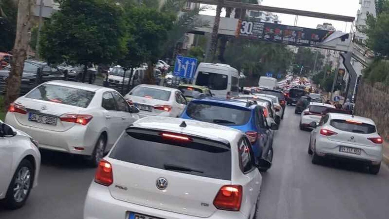 Antalya’da okullar açıldı, trafik yoğunluğu başladı.