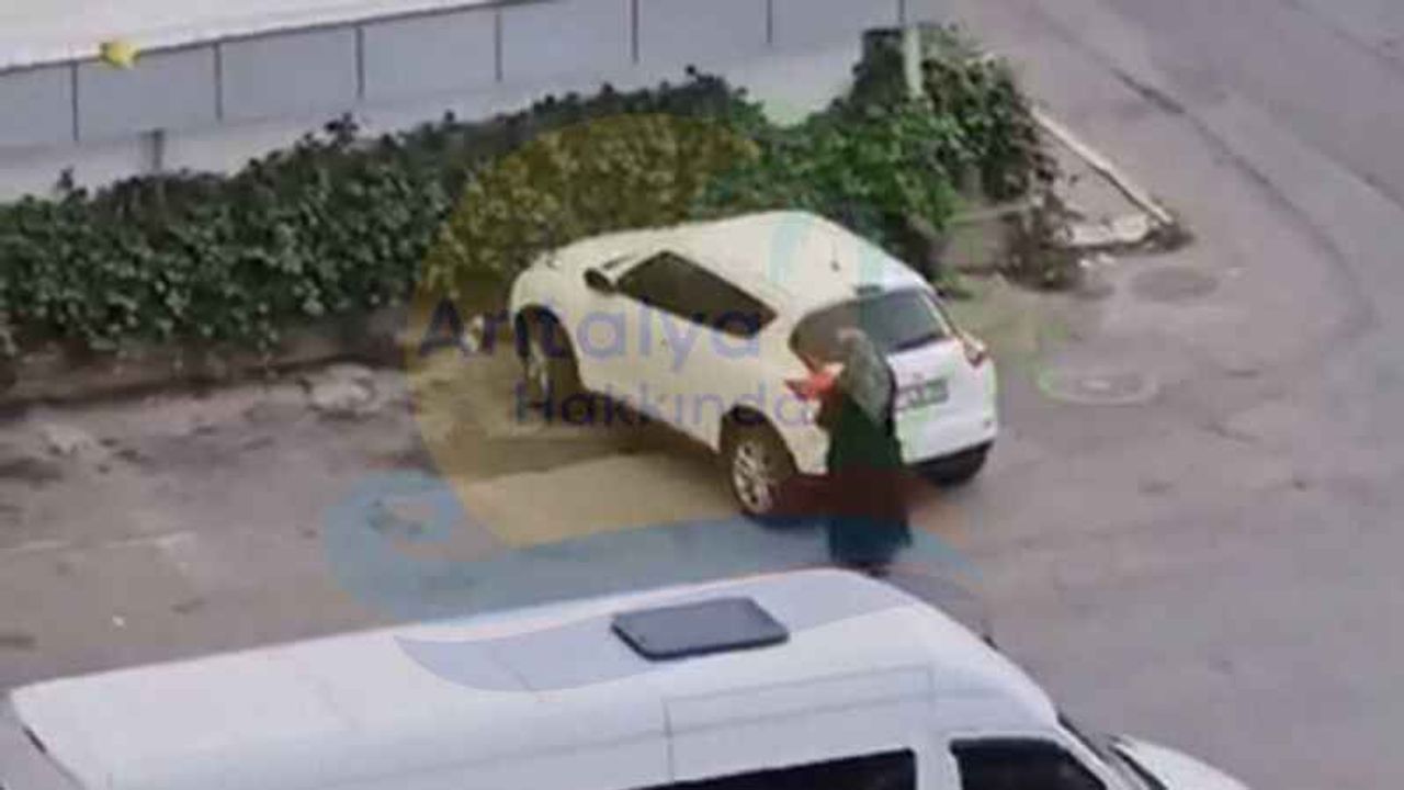 Antalya’da sokak ortasında bir kadının park halindeki araca saldırdığı anlar böyle kaydedildi.