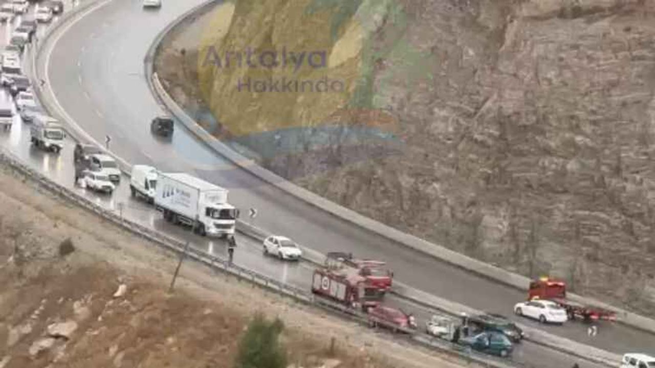 Korkuteli Antalya yolunda yoğun yağış sonrası kayganlaşan yolda kazalar meydana geldi. Trafikte uzun araç kuyrukları oluştu.